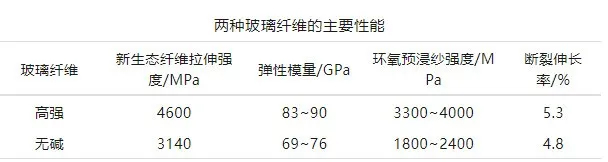 玻璃纖維作為性能優(yōu)異的無機纖維,是一種彈性模量高、拉伸強度大、斷裂伸長率小的脆性材料,具有力學性能可設(shè)計的優(yōu)勢,可根據(jù)需要靈活設(shè)計產(chǎn)品結(jié)構(gòu)來提高產(chǎn)品整體性能,被廣泛用于樹脂基復(fù)合材料的增強材料。下表為兩種玻璃纖維的主要性能。